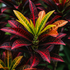 Croton Petra, scientifically known as Codiaeum variegatum 'Petra', is a popular tropical evergreen shrub renowned for its spectacularly vibrant and colorful foliage. Native to the tropical forests of Southeast Asia, it is widely cultivated as an ornamental houseplant due to its striking leaves that display a mosaic of reds, oranges, yellows, and greens, often with contrasting veins. It thrives in bright, indirect light, which is crucial for maintaining its intense coloration, and prefers high humidity and consistently moist soil. Croton Petra is toxic if ingested, primarily due to the sap, which can also cause skin irritation.